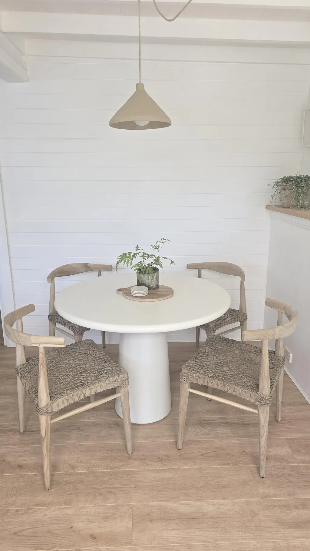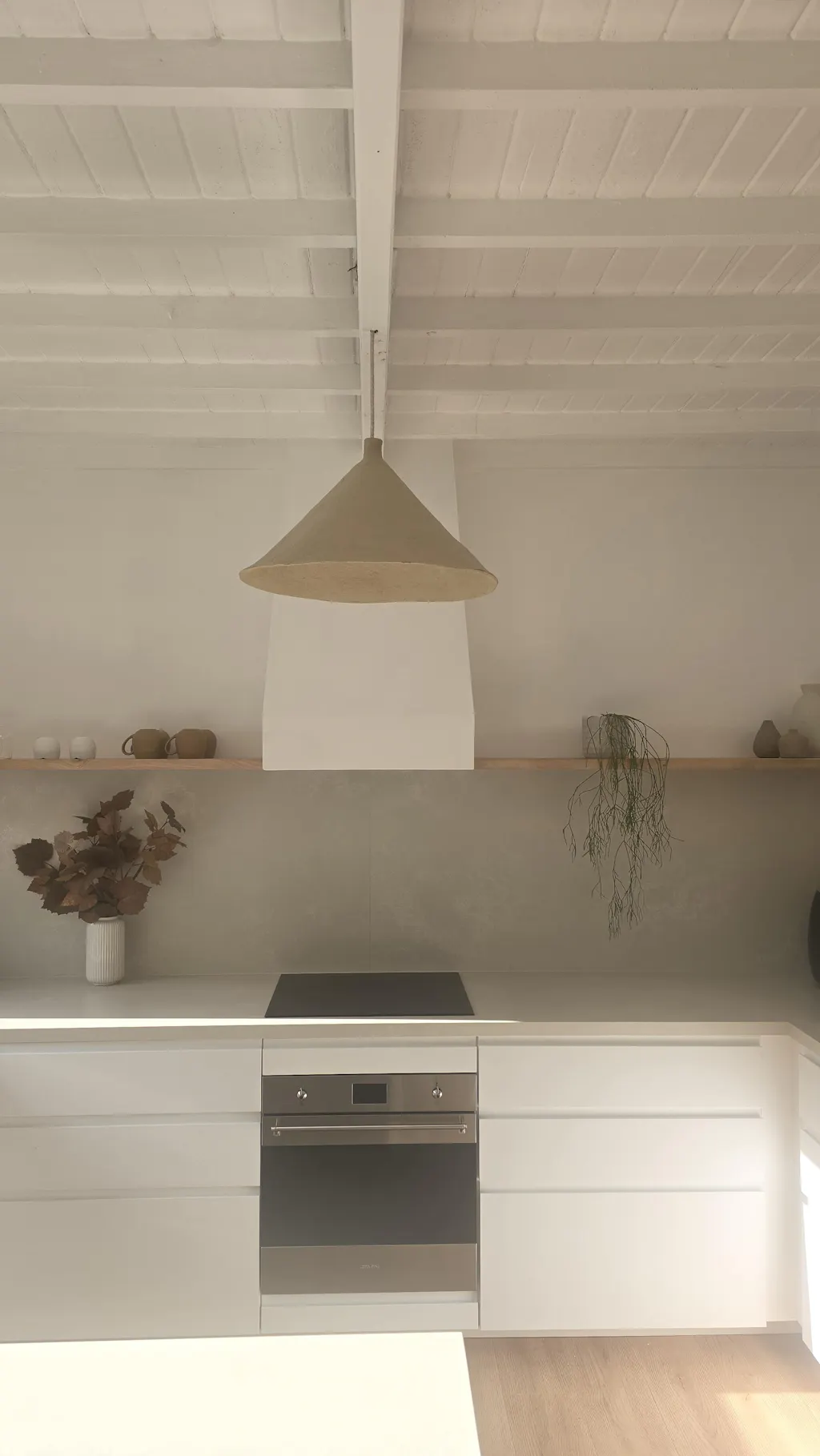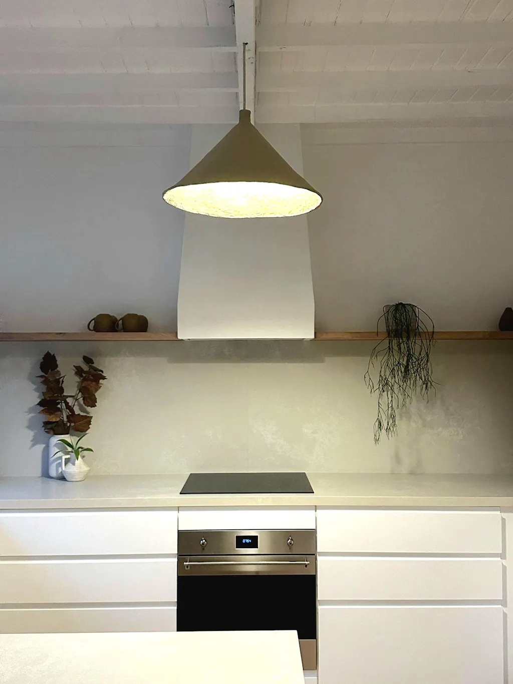 Despite the name, the tone is a soft, natural neutral - so it sits easily within a range of palettes. The considered scale of the Large Cone means it holds its own in larger spaces or raked ceilings, without feeling heavy or dominant.