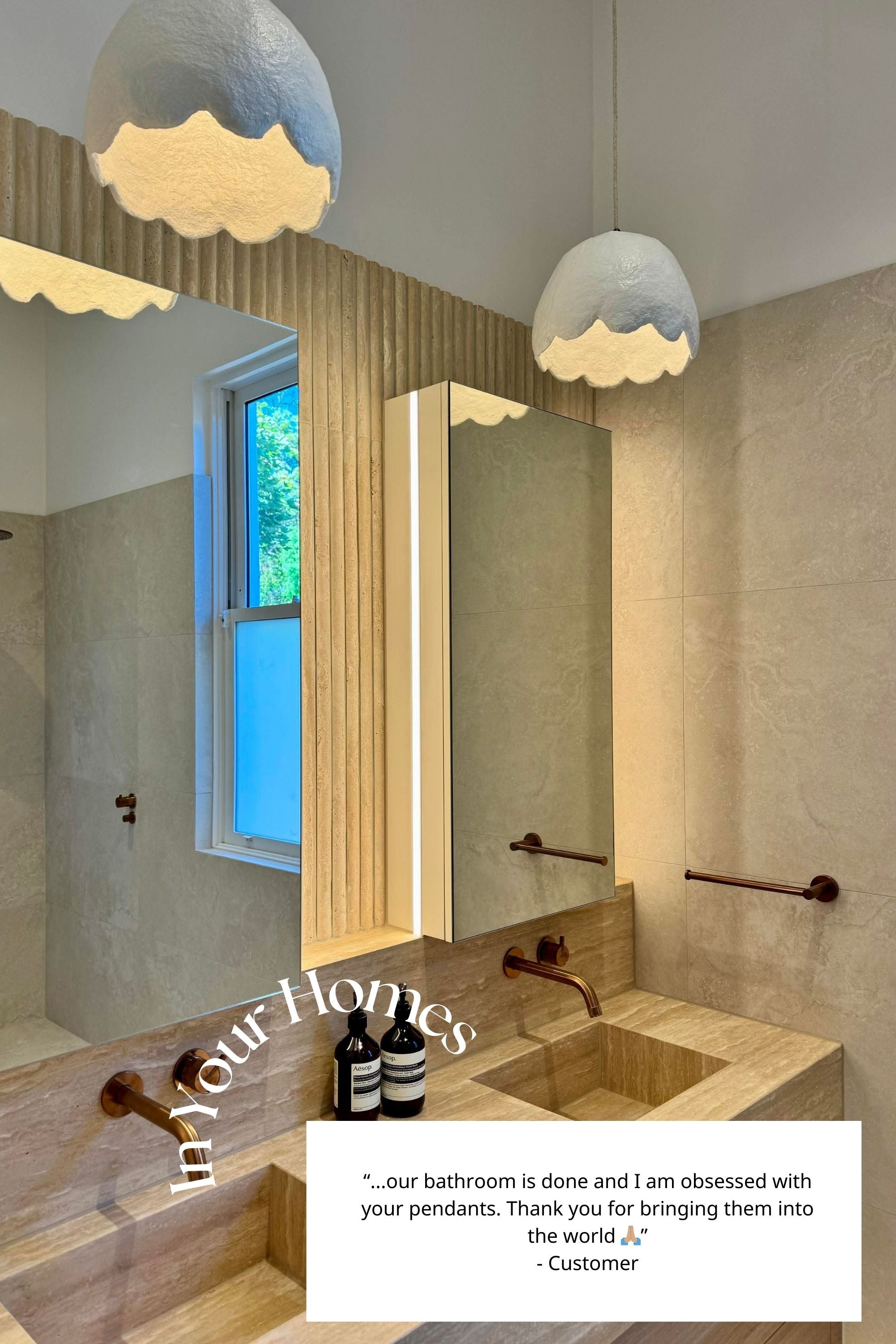 Defined by gentle curves and a softly scalloped edge, this pendant brings softness and texture to your space. The Tall Medium size is ideal for bedside, bathrooms, hallways or smaller kitchen islands.
