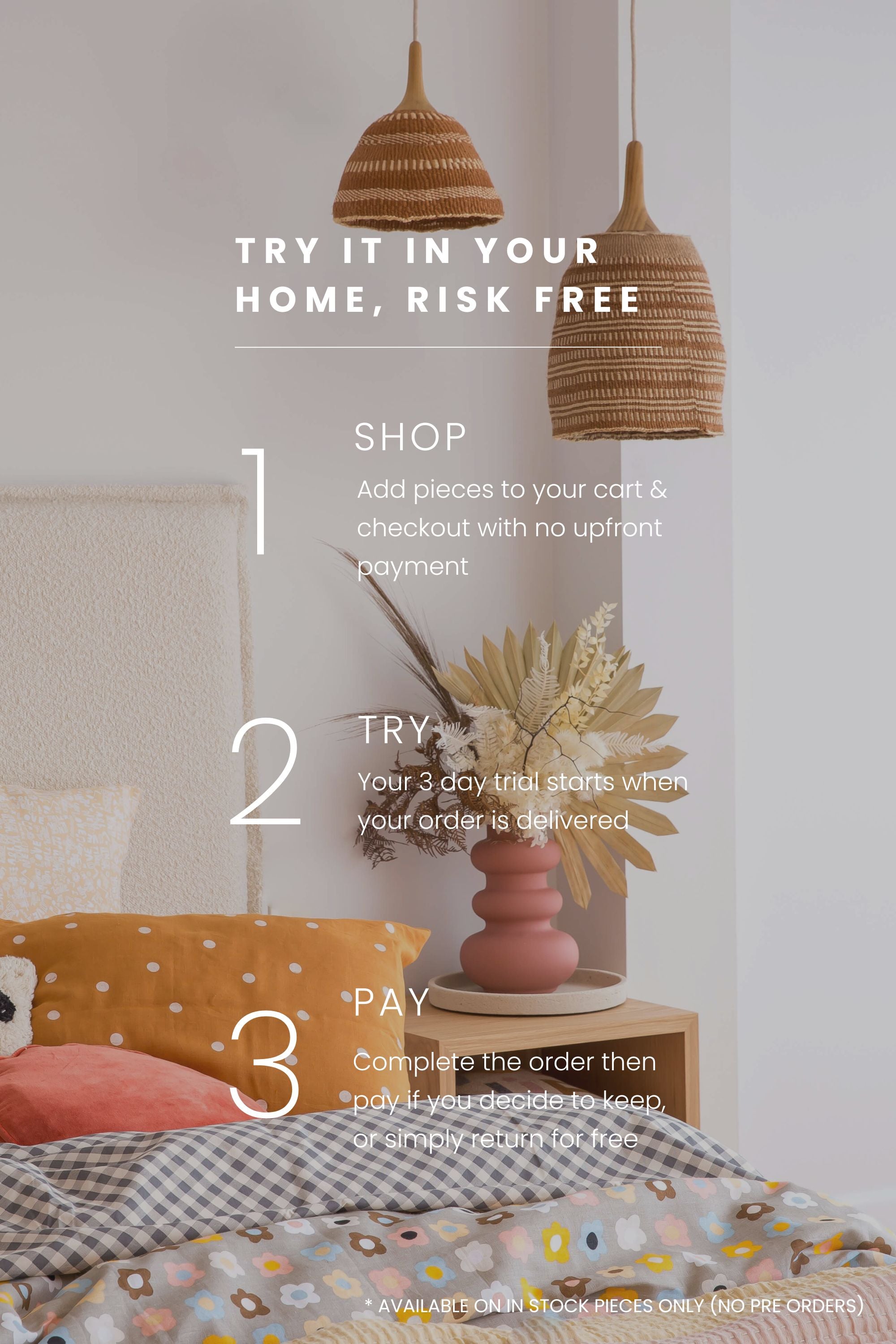 We offer a full refund on Woven Pendant Lights, provided that you email us within 14 days of receiving your order.